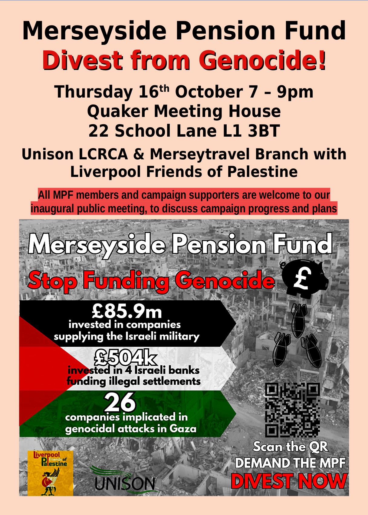 DIVEST FROM GENOCIDE! – PENSION FUND PUBLIC MEETING (16 October)